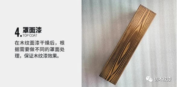 第四步:刷水性木紋罩面,在完全干透的面漆上均勻的刷面漆,也可以使用噴槍進行噴漆,注意加水稀釋,可根據(jù)施工需要進行一道或兩道罩面。